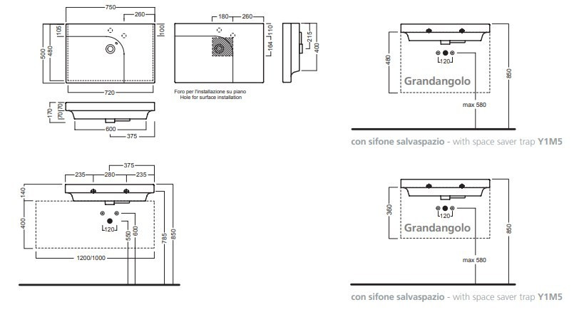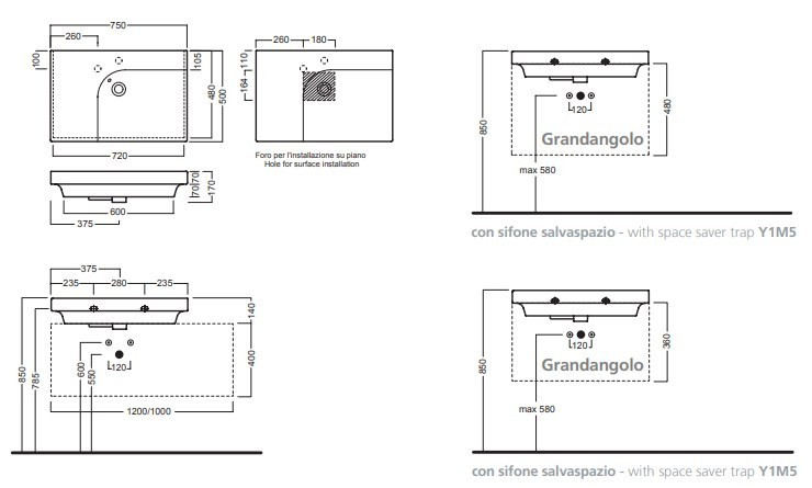 Умивальник Hatria Grandangolo Y0XK G-75 750 мм чаша ліворуч