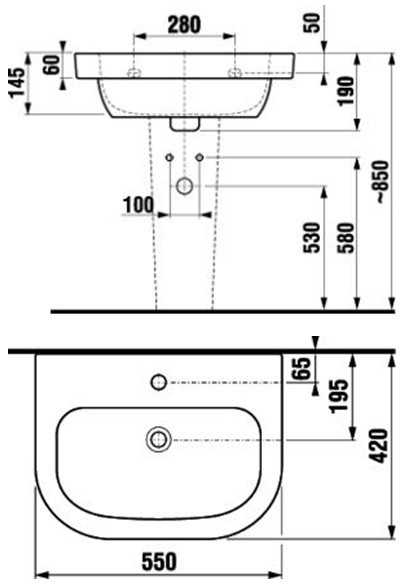 Тип монтажу - підвісний накладний на тумбу,