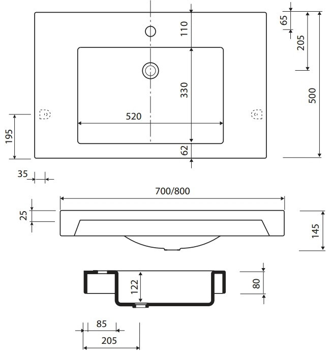 Розташування чаші - по центру,
