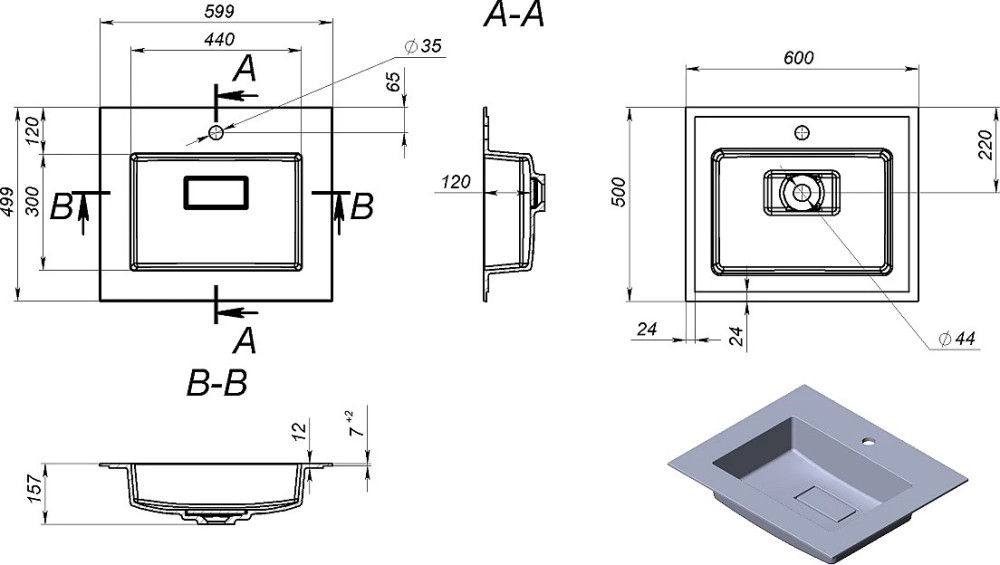 Діаметр отвору під змішувач - 35 мм,