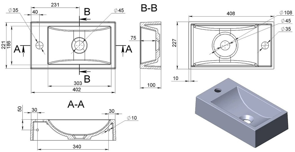 Діаметр отвору під змішувач - 35 мм,