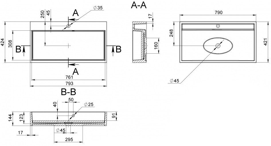 Умивальник Miraggio Mares 800