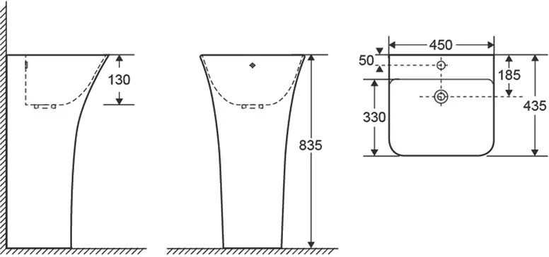 Раковина моноблок Mixxus BEVEL-1101 з отвором під змішувач та переливом 450х435х835mm (MI6697)