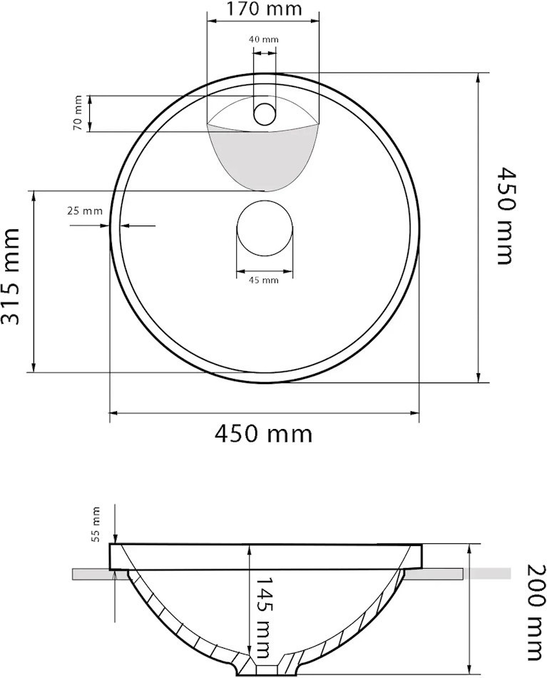 Діаметр отвору під змішувач - 40 мм,