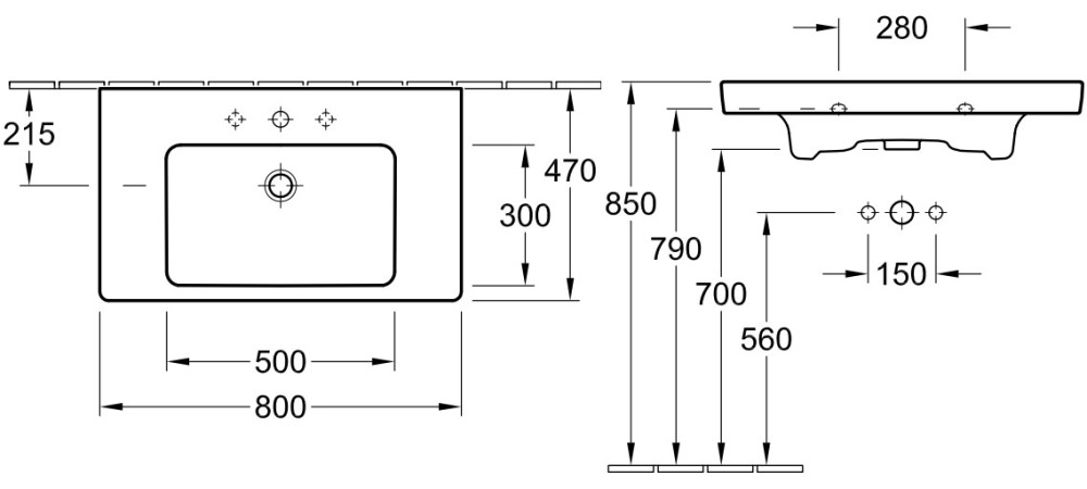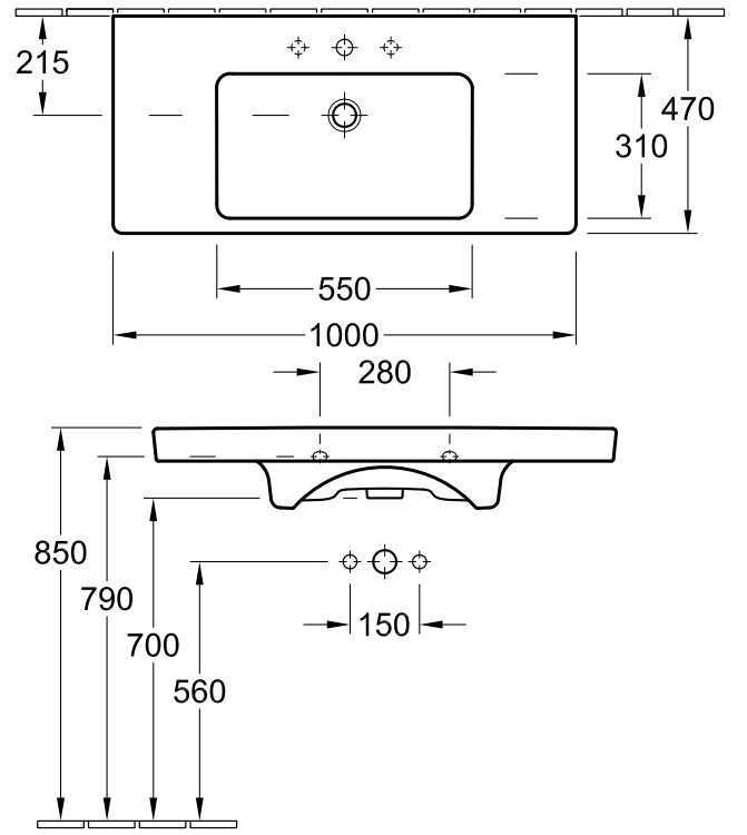 Розташування чаші - по центру,