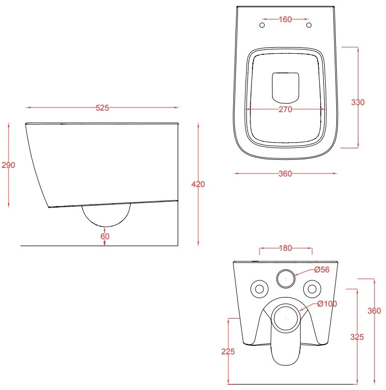 Висота чаші унітазу - 360 мм,