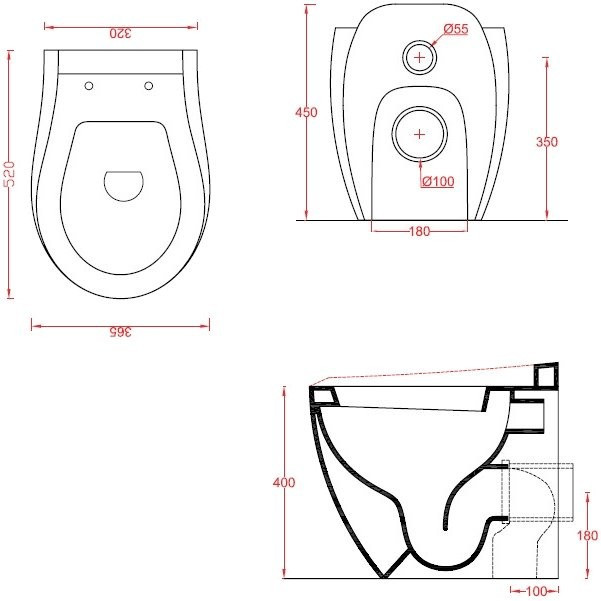 Висота чаші унітазу - 400 мм,