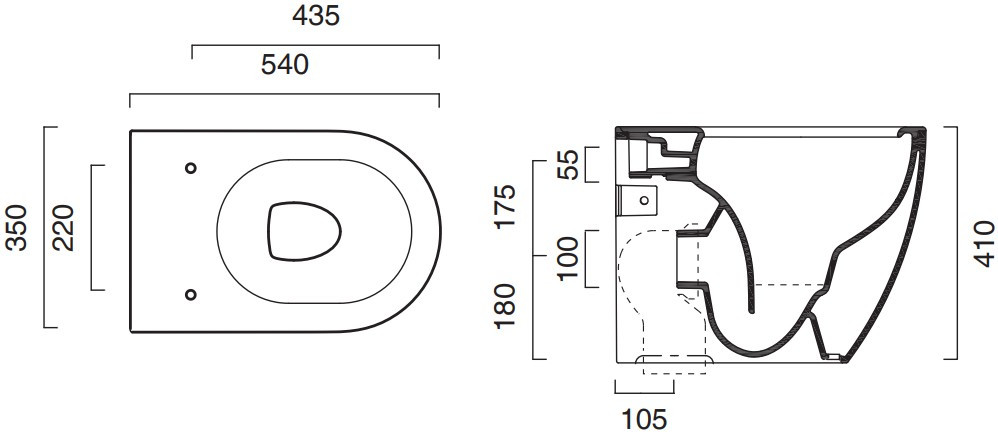 Висота чаші унітазу - 410 мм,