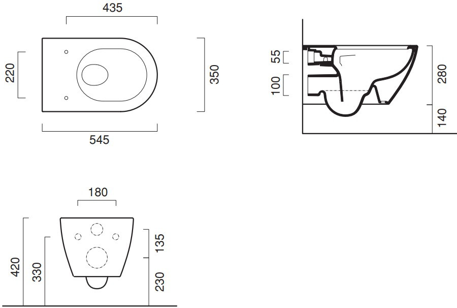 Висота чаші унітазу - 335 мм,