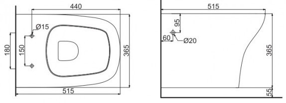 Висота чаші унітазу - 365 мм,