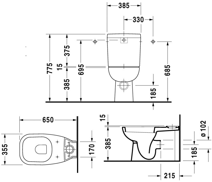 Висота чаші унітазу - 385 мм,