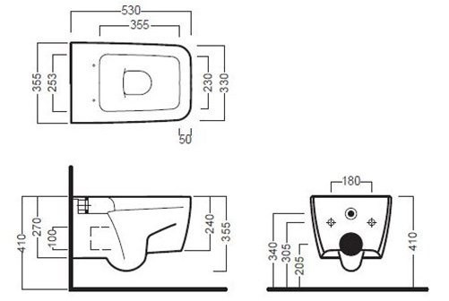 Висота чаші унітазу - 355 мм,
