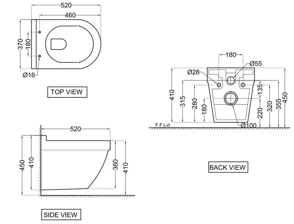 Висота чаші унітазу - 360 мм,