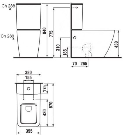 Висота чаші унітазу - 430 мм,