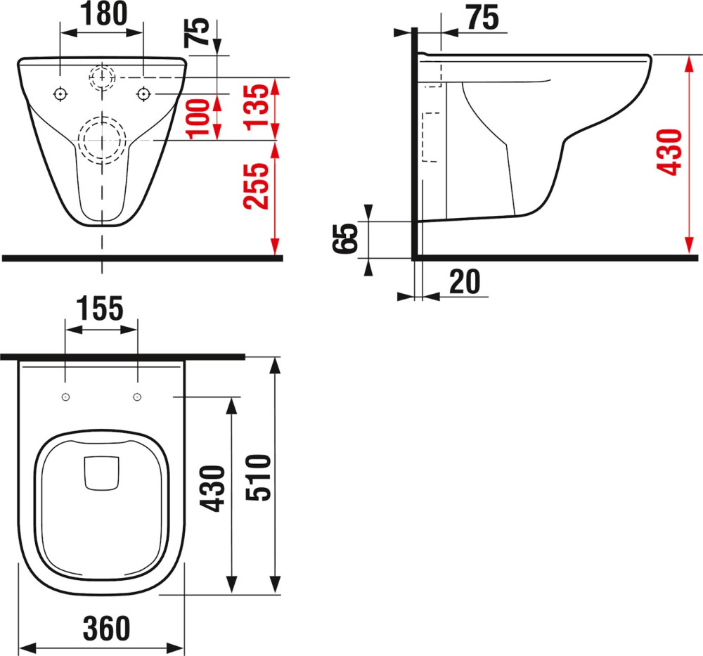 Висота чаші унітазу - 365 мм,