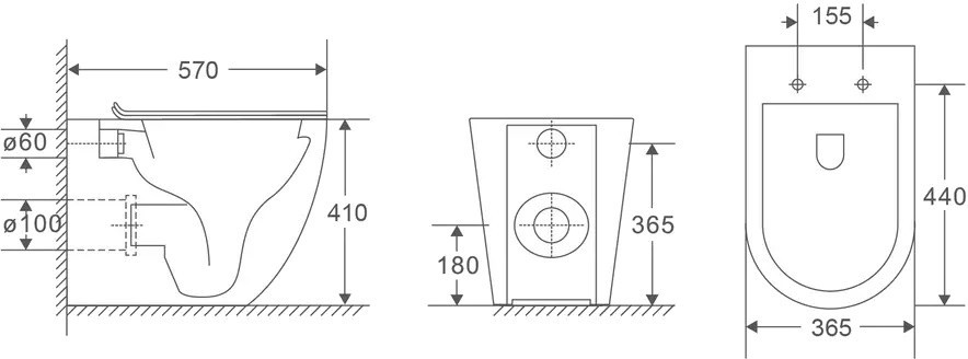 Висота чаші унітазу - 410 мм,