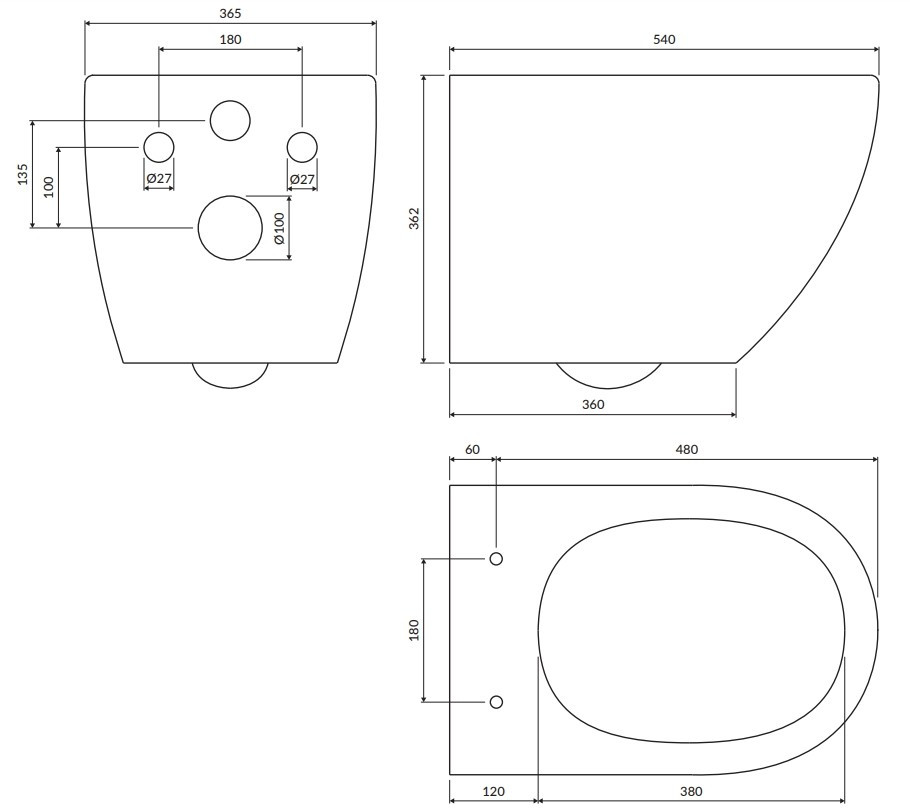 Висота чаші унітазу - 362 мм,