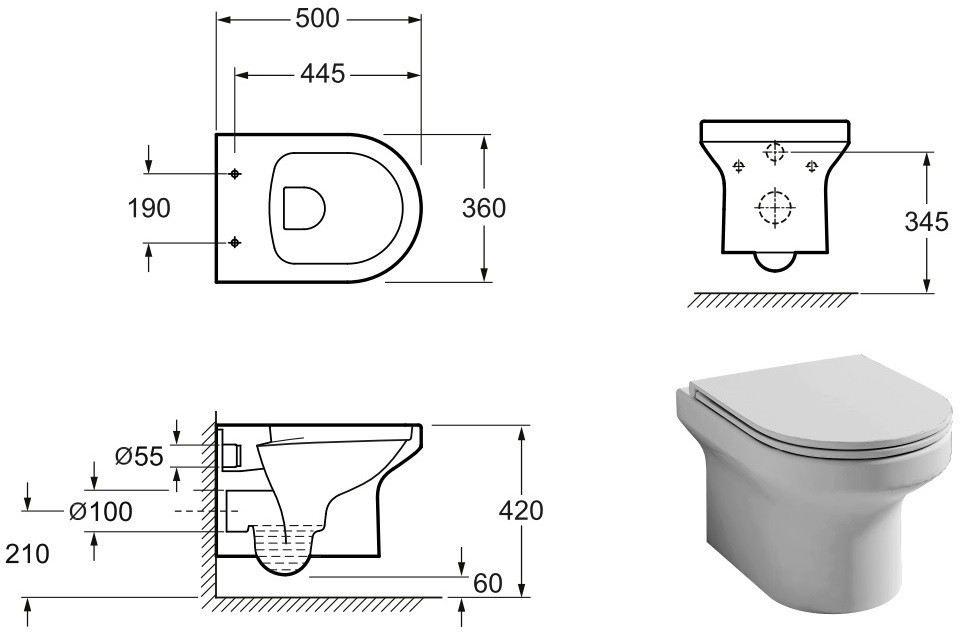 Висота чаші унітазу - 360 мм,