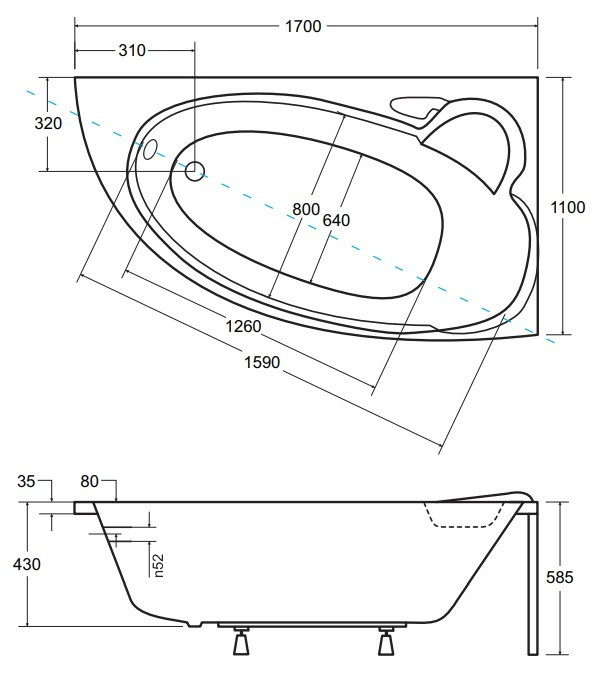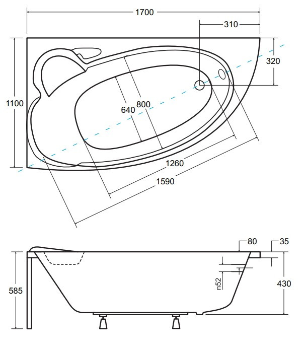 Глибина ванни - 430 мм,