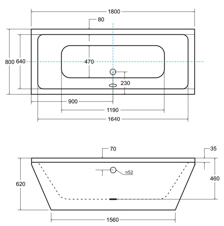 Глибина ванни - 460 мм,