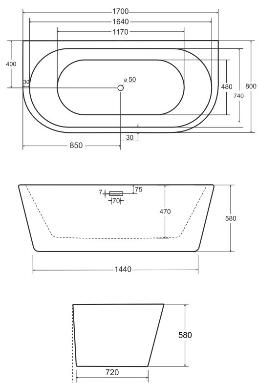 1700x800x580 мм