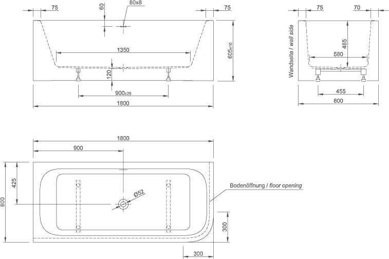 1800x800x605 мм
