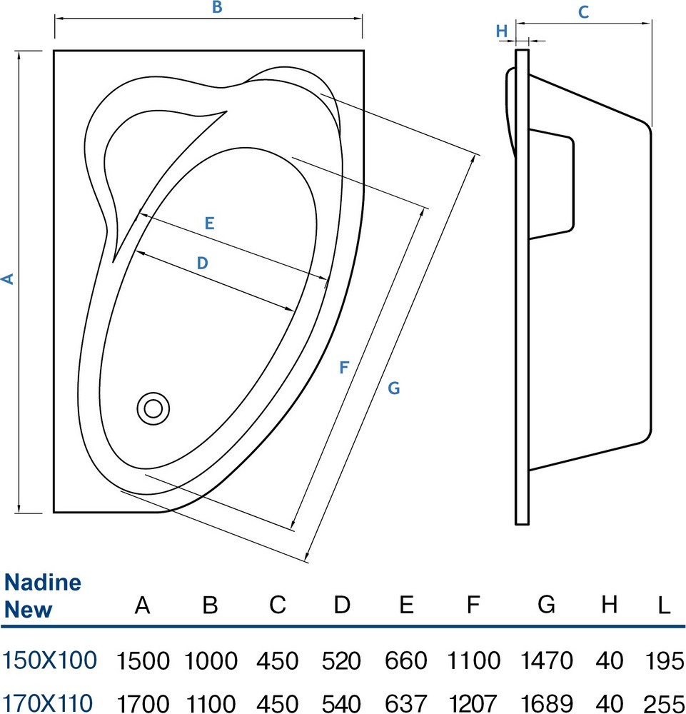 Глибина ванни - 450 мм,