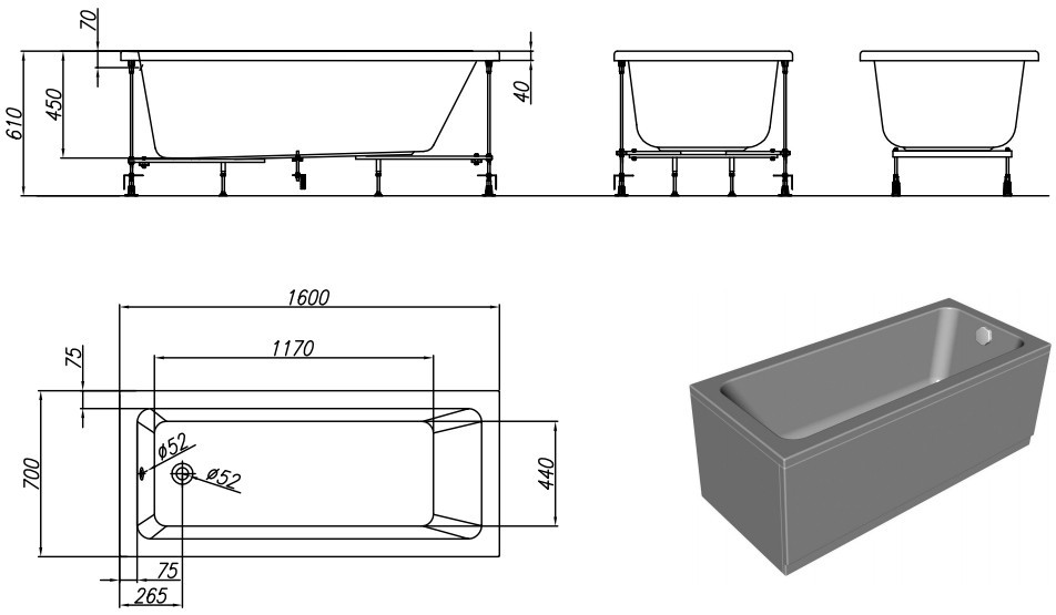 Комплектація - ванна ніжки,