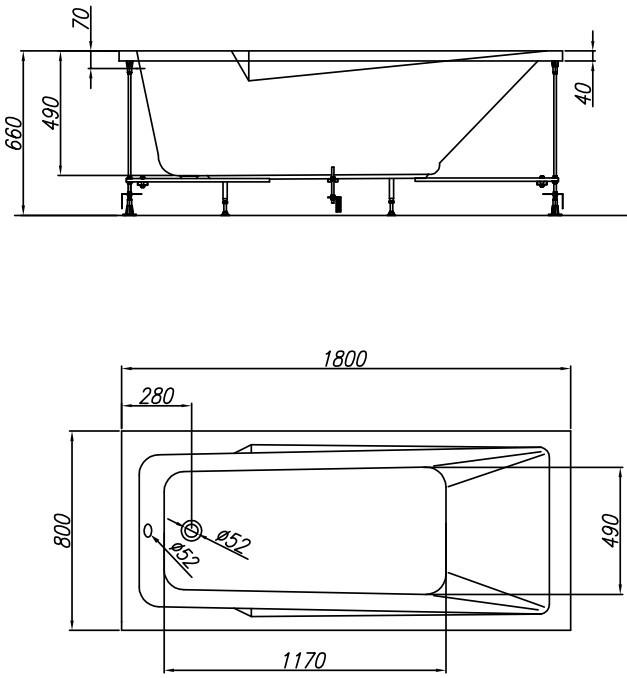 Глибина ванни - 490 мм,
