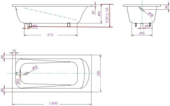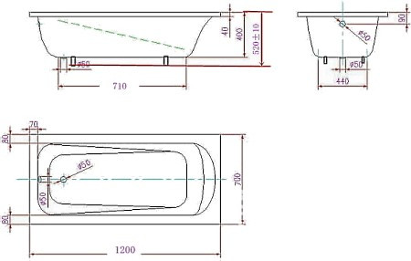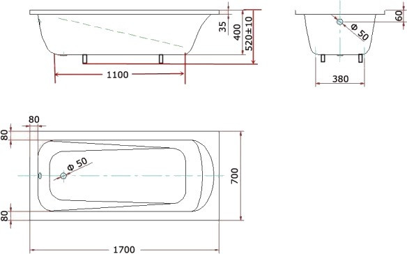 Глибина ванни - 400 мм,