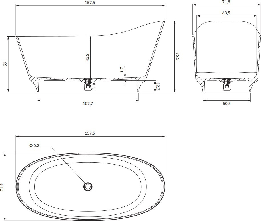 Глибина ванни - 452 мм,