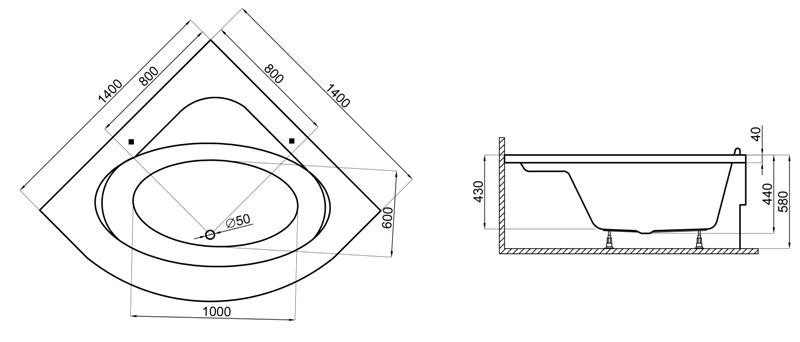 Глибина ванни - 430 мм,