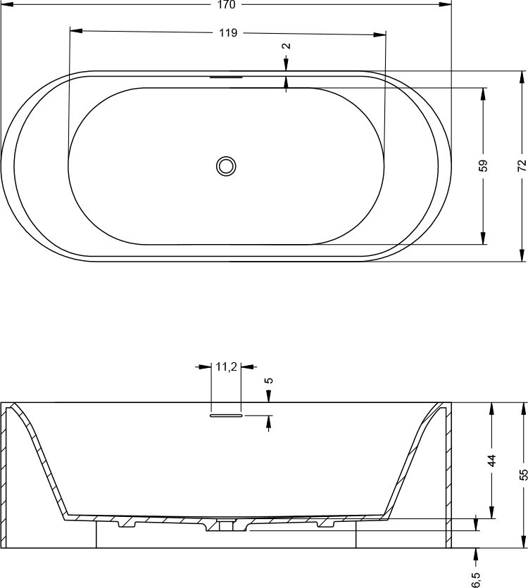 Глибина ванни - 440 мм,