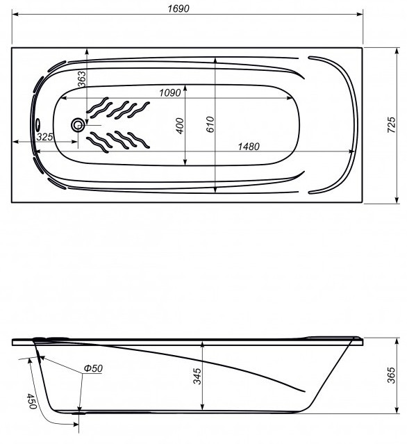 Глибина ванни - 345 мм,