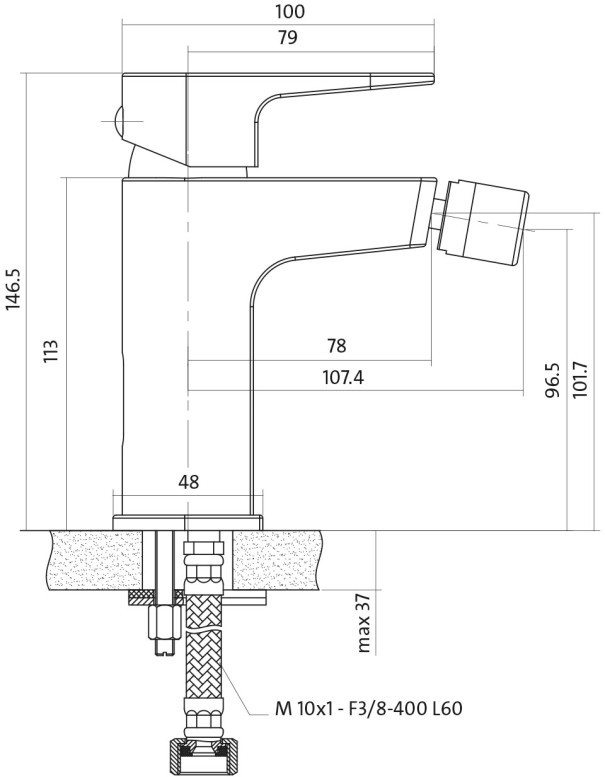 Глибина струменя - 107 мм,
