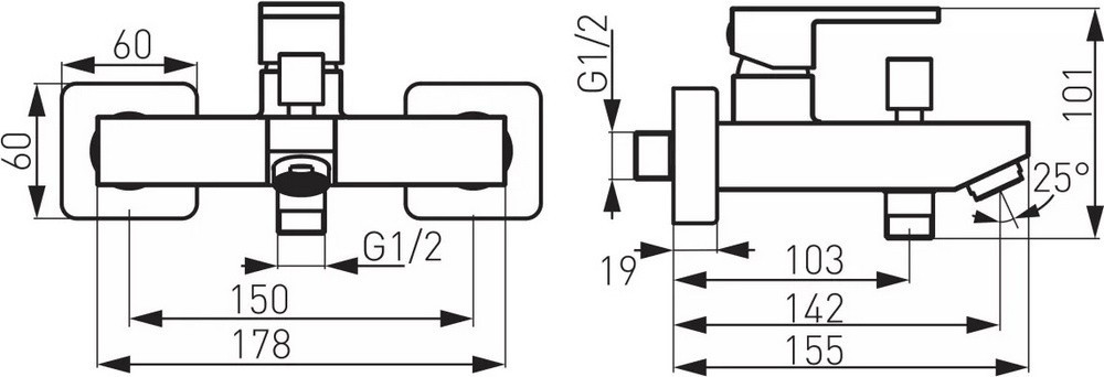 Висота змішувача - 101 мм,