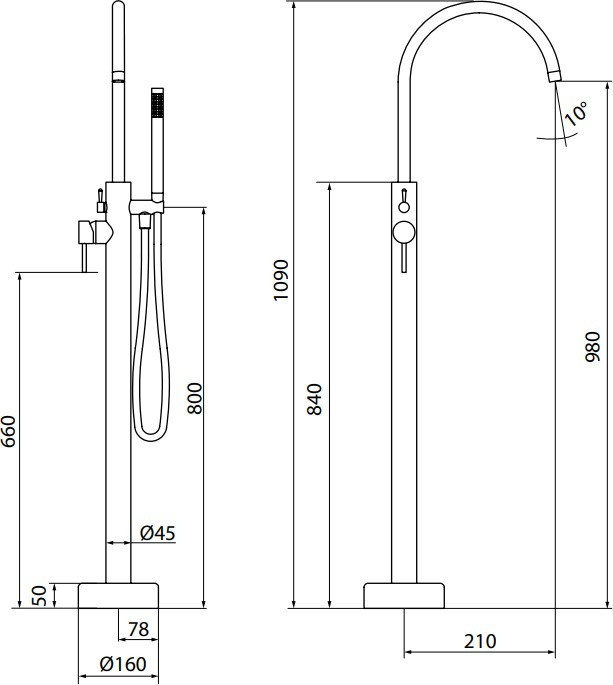Висота змішувача - 1090 мм,