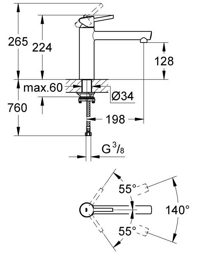 Діаметр отвору для встановлення - 34 мм,