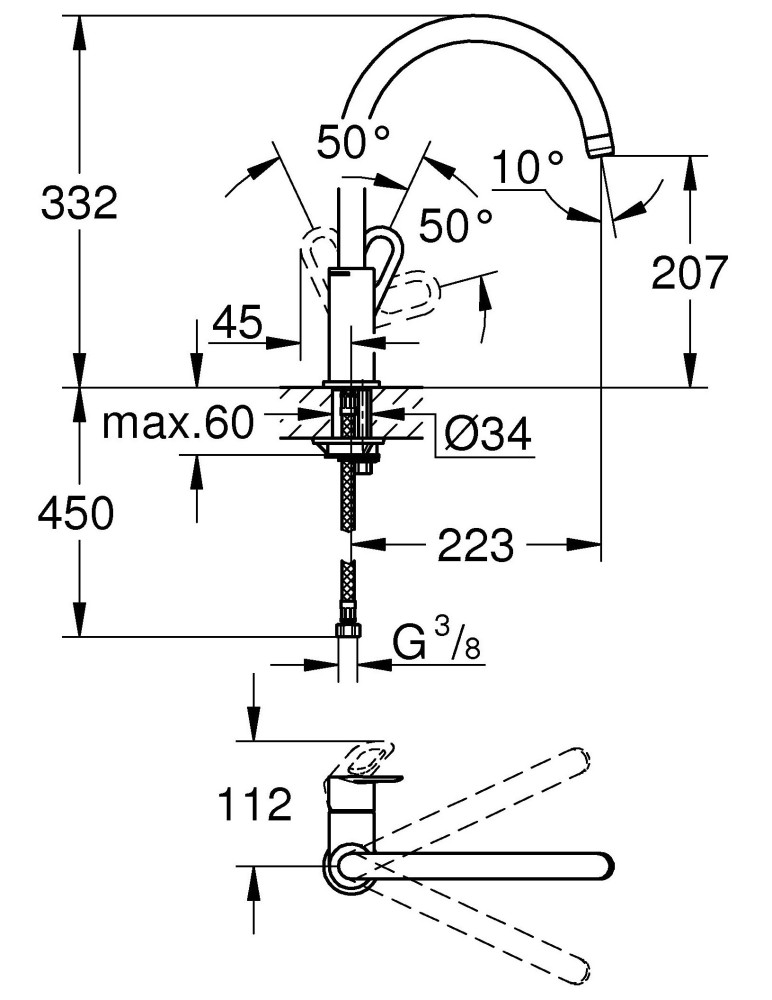 Діаметр отвору для встановлення - 34 мм,
