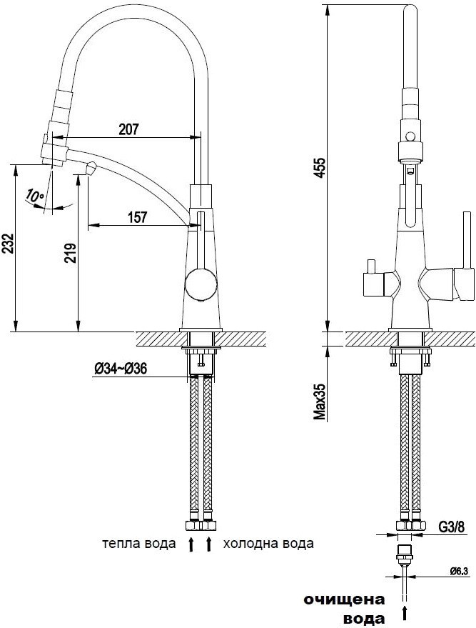 Глибина струменя - 207 мм,