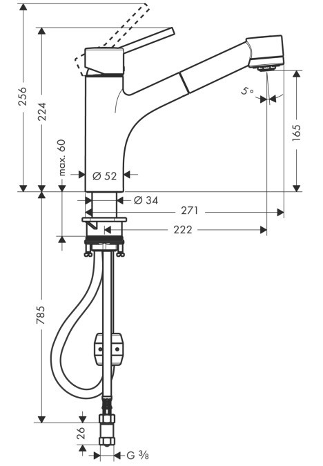Висота змішувача - 256 мм,