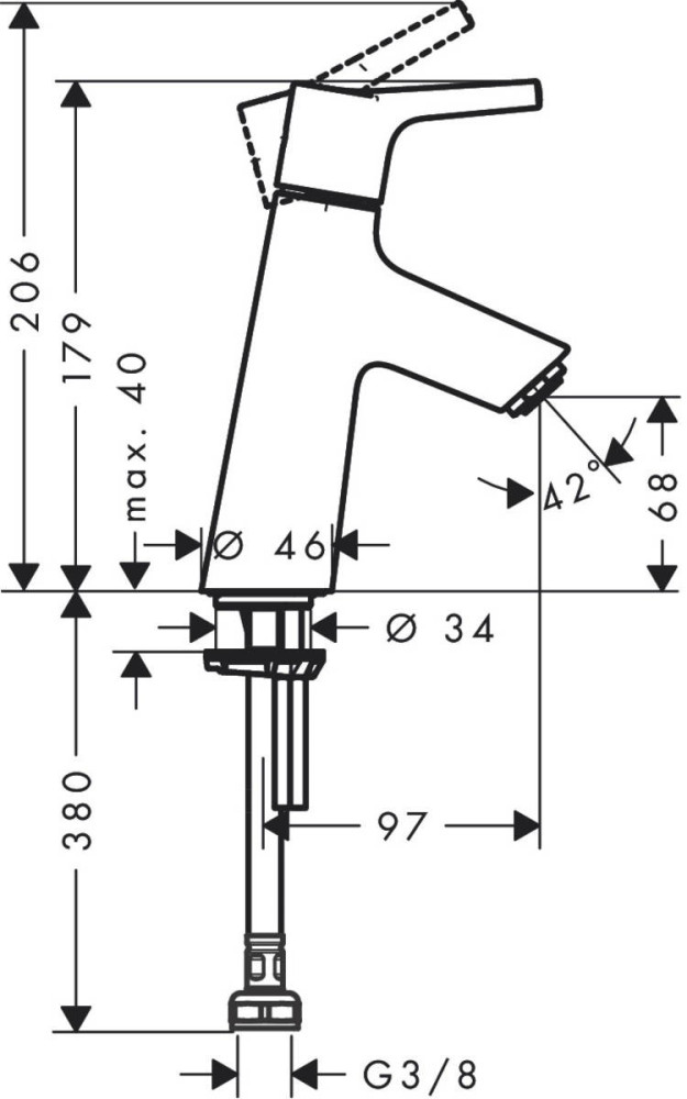 Глибина струменя - 97 мм,