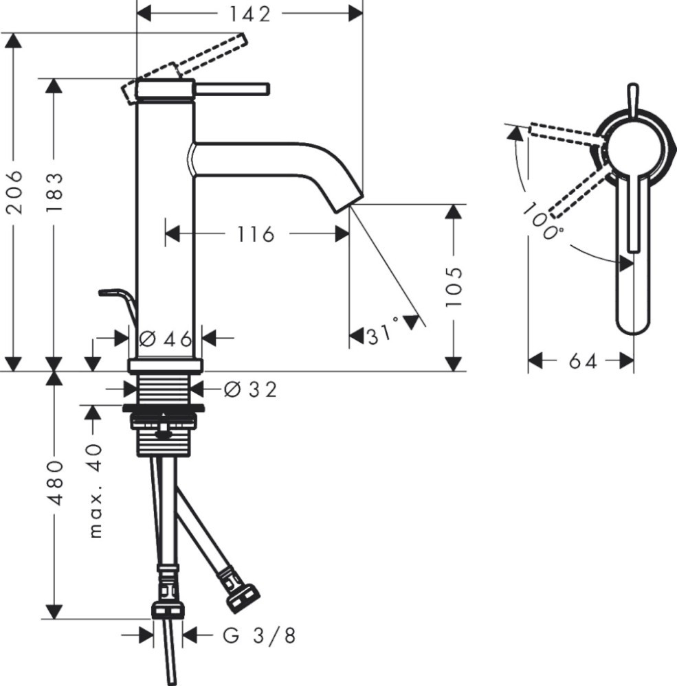 Высота струи - 105 мм,