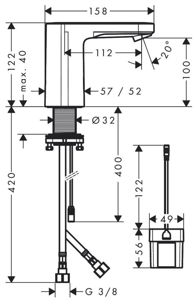 Підведення води - шланги 420 мм G 3/8",