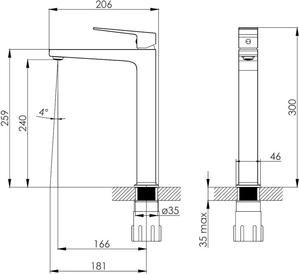 Діаметр отвору для встановлення - 35 мм,