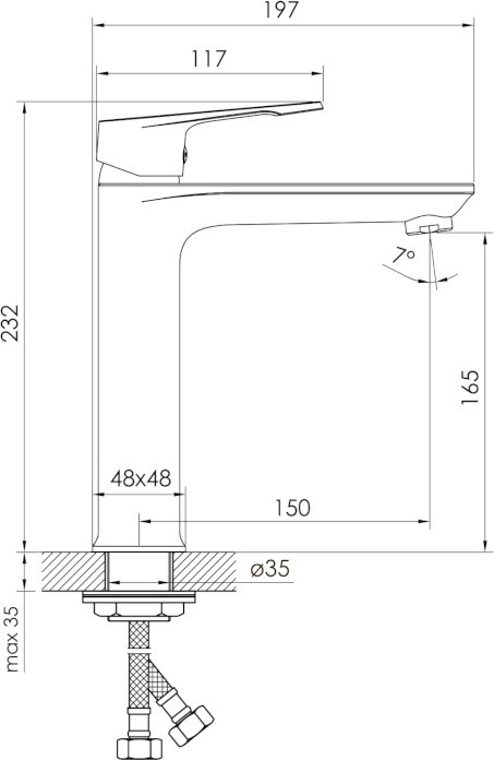 Висота змішувача - 232 мм,