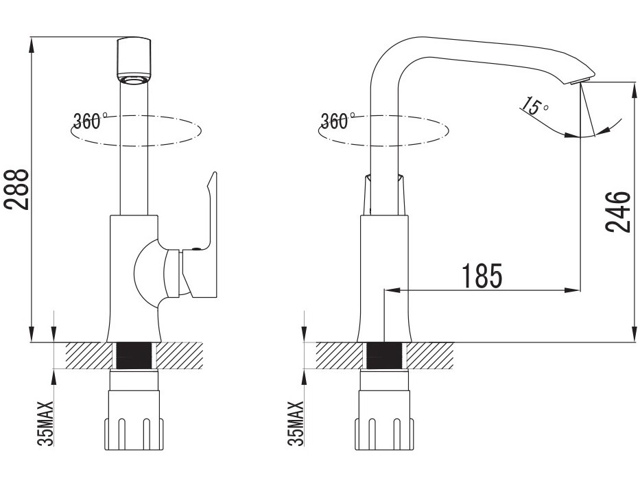 Висота змішувача - 288 мм,