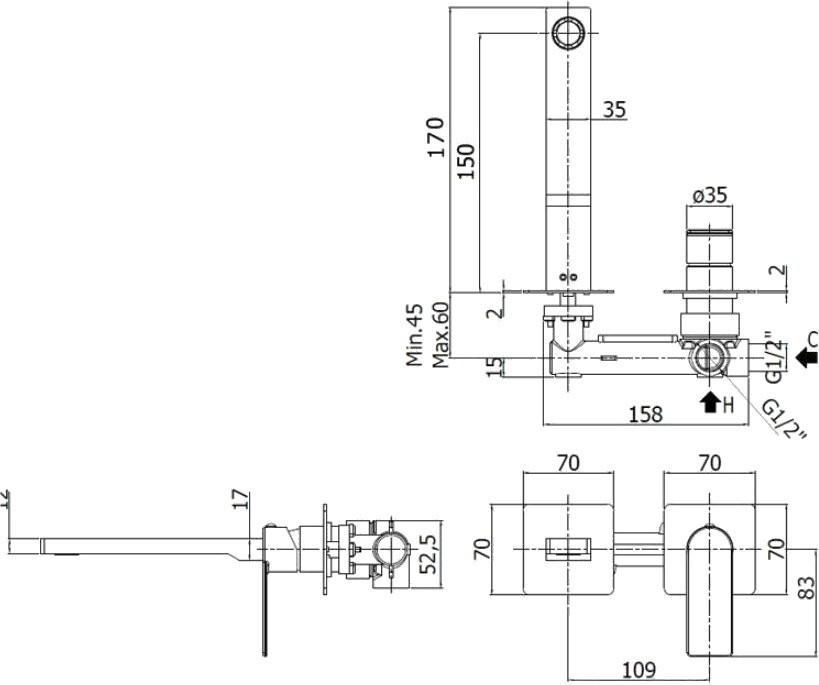 Глибина конструкції - 170 мм,