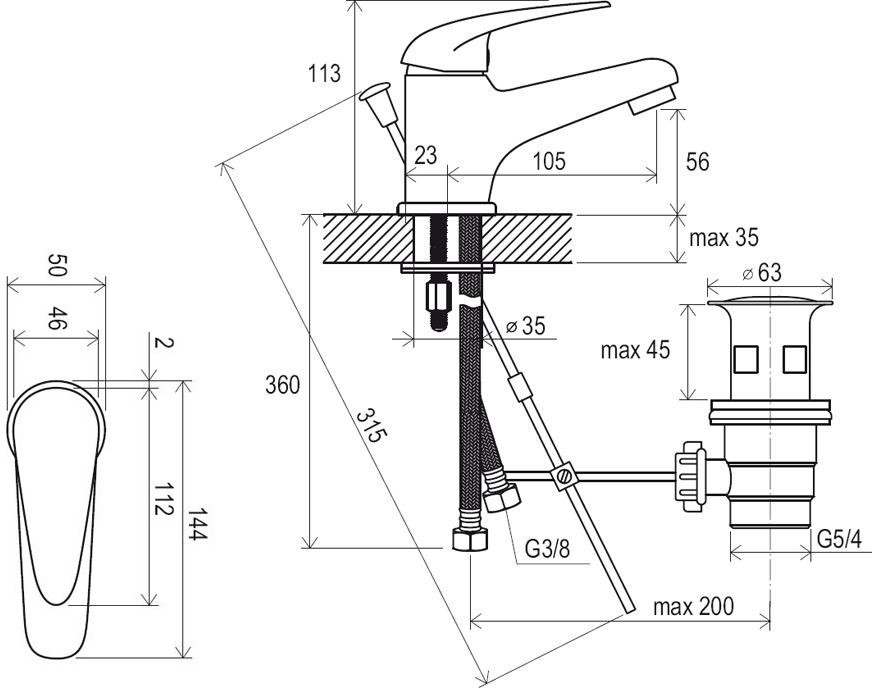 Висота змішувача - 113 мм,