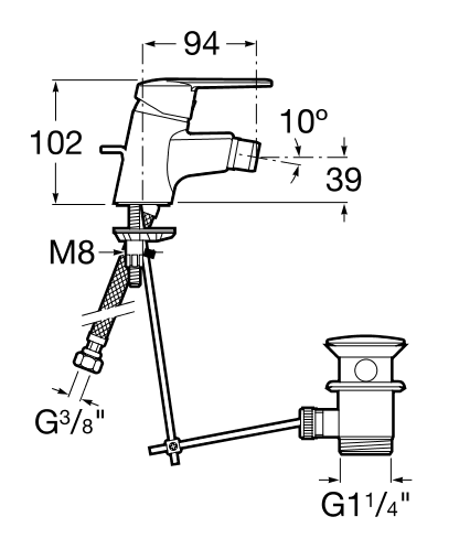 Высота струи - 39 мм,